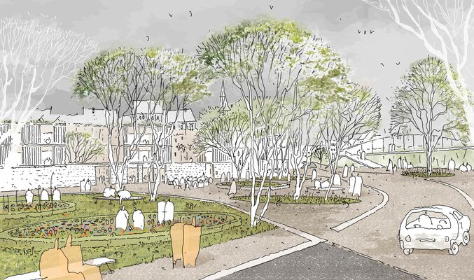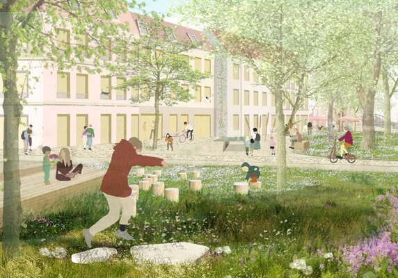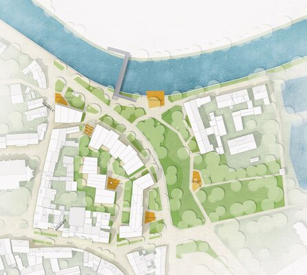 - 2. Preis (23.160 Euro): QUERFELDEINS | Landschaft | Städtebau | Architektur Partnerschaftsgesellschaft von Landschaftsarchitekten, Stadtplanern und Architekten Grosskopf-Stöcker-Fischer mbB, Dipl.-Ing. Landschaftsarchitektin und Stadtplanerin Annegret Stöcker, Dipl.-Ing. Freier Garten- und Landschaftsarchitekt Frank Großkopf, Dipl.-Ing. Freier Architekt und Stadtplaner | Regierungsbaumeister Daniel Stöcker-Fischer, Dresden