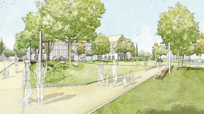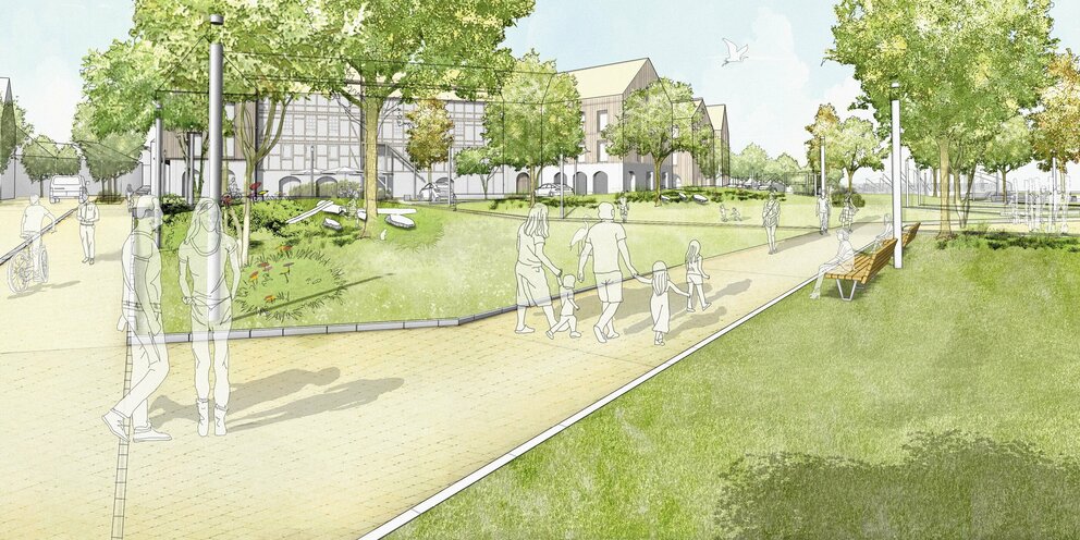 - 1. Preis (38.600 Euro): GrünPlan Landschaftsarchitekten BDLA PartGmbB Jöris, Krannich, Schulz, Dipl.-Ing. Landschaftsarchitekt Thomas Schulz mit MOSAIK architekt:innen bda Marlow, Maurer, Uetzmann, Vogt, Wilhelmsen Part mbB für Architektur, Innenarchitektur und Stadtplanung, Dipl.-Ing. Architekt BDA Tev Hagen Wilhelmsen, und PVB Planungsgesellschaft Verkehrsbau mbH, Dipl.-Ing. Martin Reinckens, alle Hannover