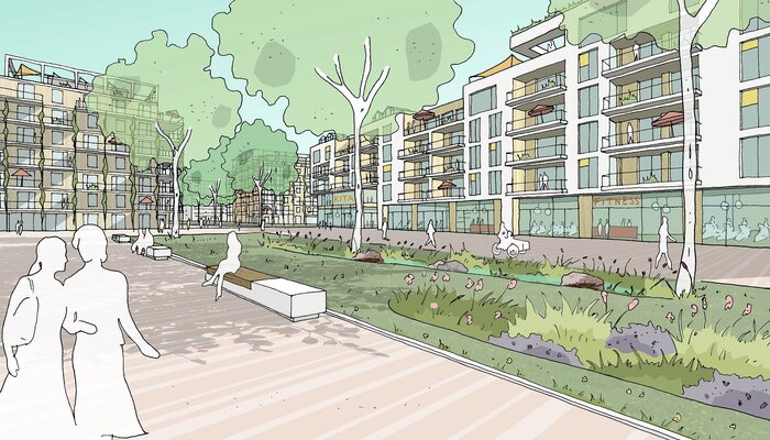- 2. Preis (6.000 Euro): Baufrösche • Architekten und Stadtplaner GmbH, Dipl.-Ing. Uwe Hoegen, Architekt, und LK Argus Kassel GmbH, Dipl.-Ing. Michael Volpert, M. Sc. Lennart Saß, Stadt- und Regionalplanung, beide Kassel