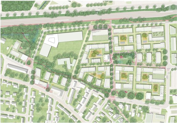 Insgesamt liegt hier ein Entwurf vor, der eine angemessene Dichte und städtebauliche Körnung mit typologischer Vielfalt und einem stabilen Freiraumgerüst zu einem hochwertigen Quartier mit angenehmer Wohnatmosphäre verbindet.