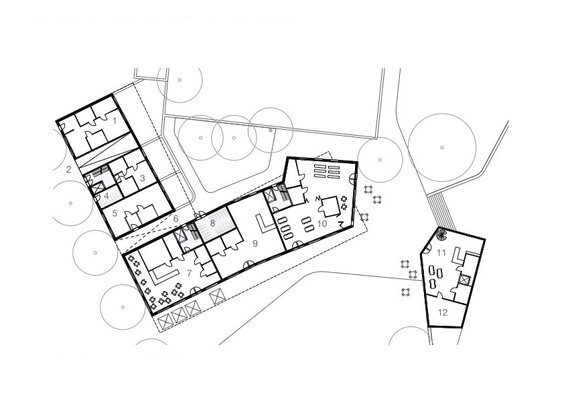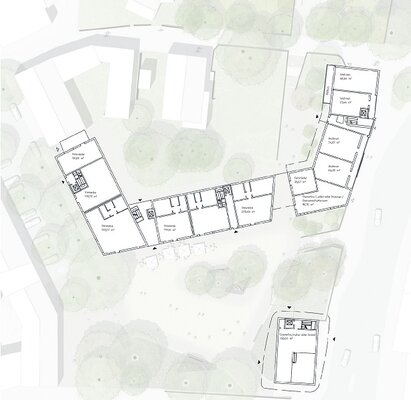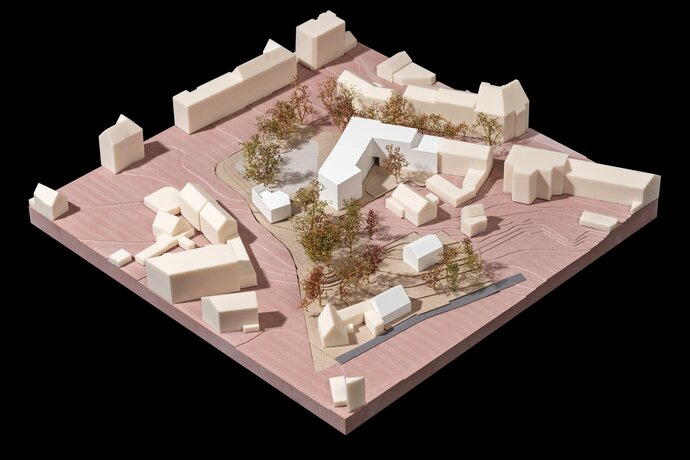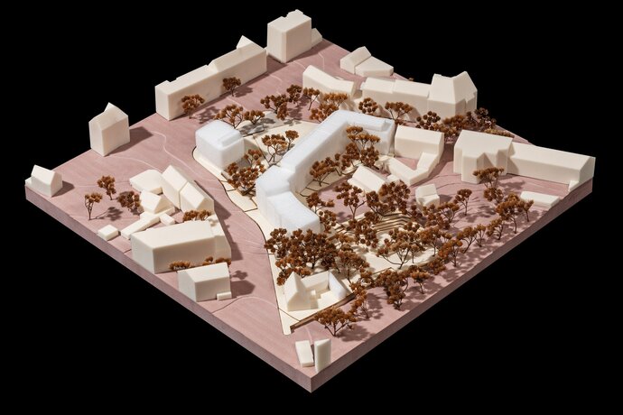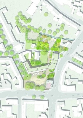 Die Arbeit überzeugt mit einer dem Ort angemessenen Dichte und Gestaltung sowie mit einem ausgewogenen Verhältnis von Bebauung, öffentlichen und privaten Freiflächen. Sie schließt in ihren Proportionen und ihrer Gliederung sehr gut an die Umgebungsbebauung an. Die Wohn- und gewerblichen Nutzungen, insbesondere auch das Jugendzentrum, sind richtig platziert und in sich schlüssig organisiert.