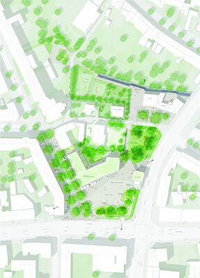 Von großer Bedeutung ist neben der Um- und Neugestaltung die städtebauliche Neuordnung und Arrondierung. Hierzu soll im Rahmen des Wettbewerbs ausgelotet werden, wo und in welchem Maß eine hochbauliche Fassung mit Integration einer multifunktionalen Freifläche des Platzes aus räumlichen und funktionalen Gründen (z. B. aus Belangen des Lärmschutzes) sinnvoll ist. In alle Überlegungen einzubeziehen sind die verkehrlichen Rahmenbedingungen, die anspruchsvolle Topografie, die Umwelt- und Freiraumbelange sowie die vielfältigen Nutzungsansprüche.