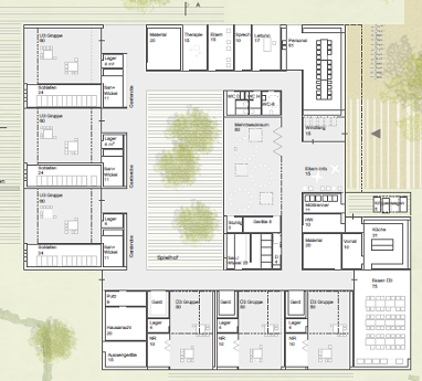 Die Kindertagesstätte soll ein richtungsweisendes Projekt mit hohen Ansprüchen an die Funktionalität und die Energieeffizienz werden. Im Bereich des avisierten Standortes befinden sich mehrere Sportanlagen sowie ein Bürgerhaus. Das Grundstück ist unbebaut und frei von rechtlichen Belastungen. Das Raumprogramm umfasst