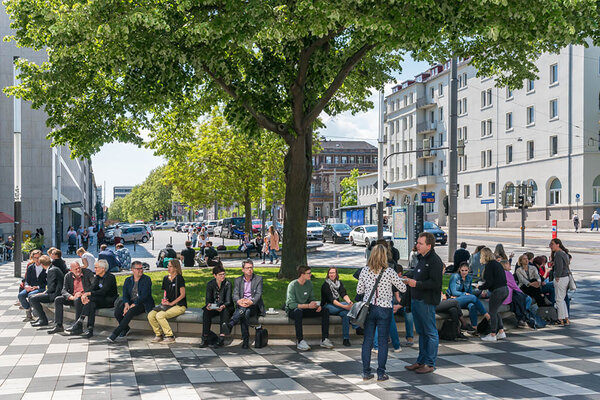 Die Umlenkung von Verkehrs- und Konsumströmen, der Leerstand der Einzelhandelsgeschäfte, die Frage nach Mobilitätsgerechtigkeit oder neue Leitbilder der Stadt stellen eine große Herausforderung zum Erhalt dieses Fünfzigerjahre-Ensembles aus flankierender Stufenbebauung und kaskadenförmiger Freiraumskulptur mit grünen Ruheinseln dar.