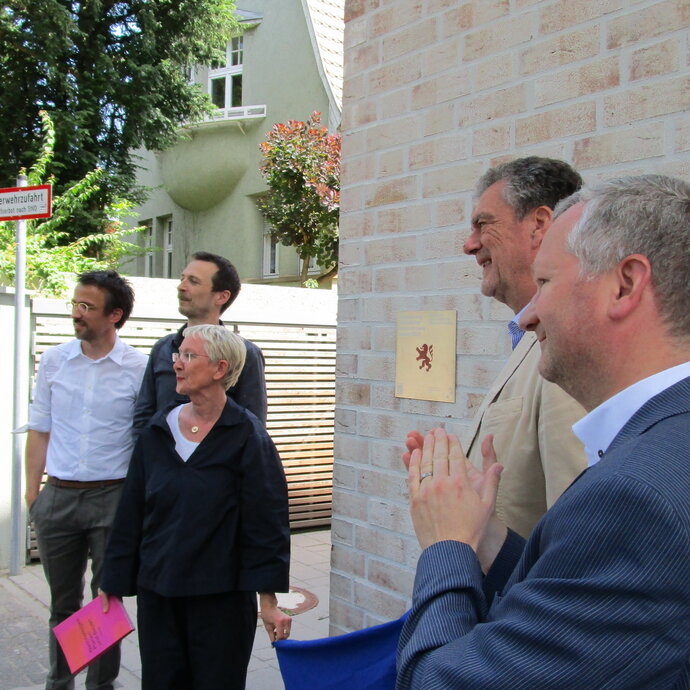 Die Plakette wird bei einem PR-Termin, in Anwesenheit der beiden Auslober*innen, Vertreter*innen der Presse sowie der Planer*innen und Bauherr*innen, vor Ort enthüllt.
