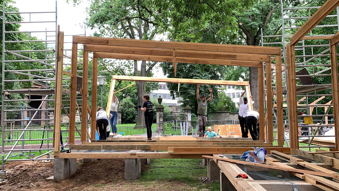 Modulare Bauten und studentische Projekte kennen wir aus der Baugeschichte einige. Der Wunsch, Häuser in Einzelteile zerlegen zu können, diese zu transportieren und an verschiedenen Orten wieder aufbauen zu können, beschäftigt Architekt*innen und Planer*innen seit langer Zeit. Nomadische Strukturen vereinen aber auch viele Anforderungen hinsichtlich ihrer Witterungsbeständigkeit, ihres Gewichts und Transports. Dass sich eine Studentengruppe mit diesem Thema befasst, ist nicht weiter überraschend. Geht doch die Forschungsstation „Traces“ in Kassel auf ein studentisches Projekt an der Universität Kassel zurück.