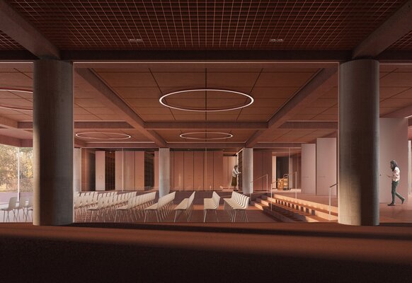 Die Architektursprache soll der besonderen Nutzung und Bedeutung der Institution gerecht werden.