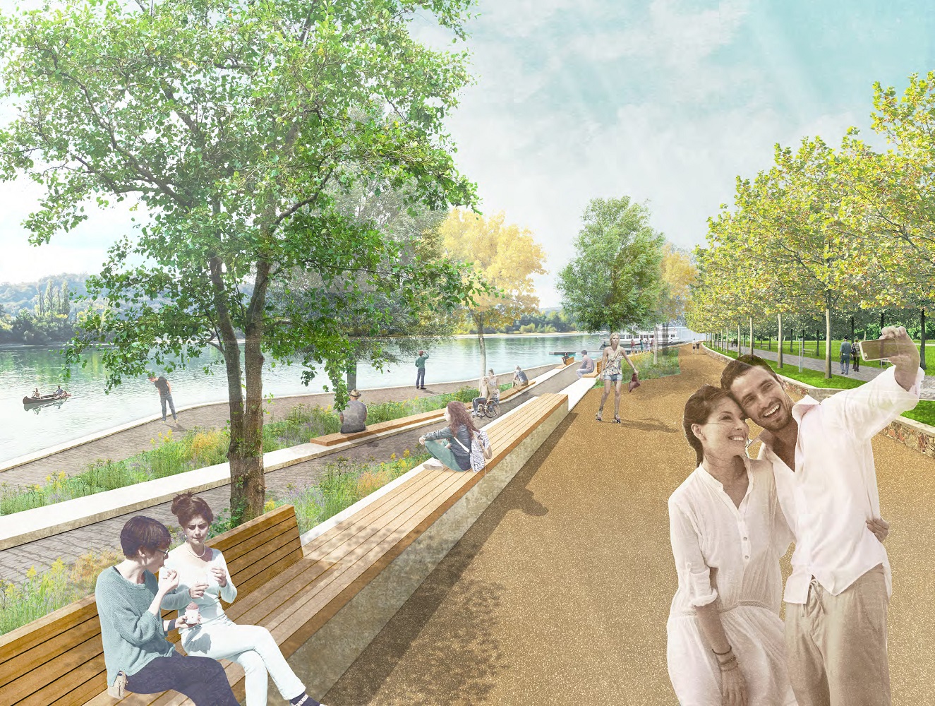 Gegenstand des Wettbewerbes in Rüdesheim ist die Ausarbeitung eines freiraumplanerischen Entwurfs für die Gestaltung des Uferbereiches am Rhein sowie die freiraumplanerische Entwicklung im Übergang zum Stadtgebiet.