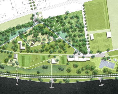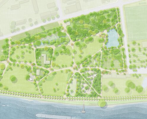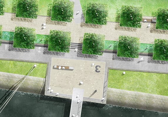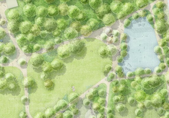 - 2. Preis (47.000 Euro): geskes.hack Landschaftsarchitekten GmbH, Dipl.-Ing. Landschaftsarchitekt Christof Geskes, Berlin