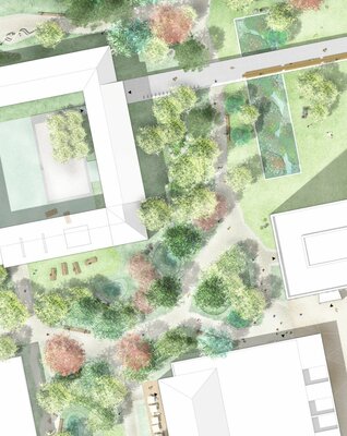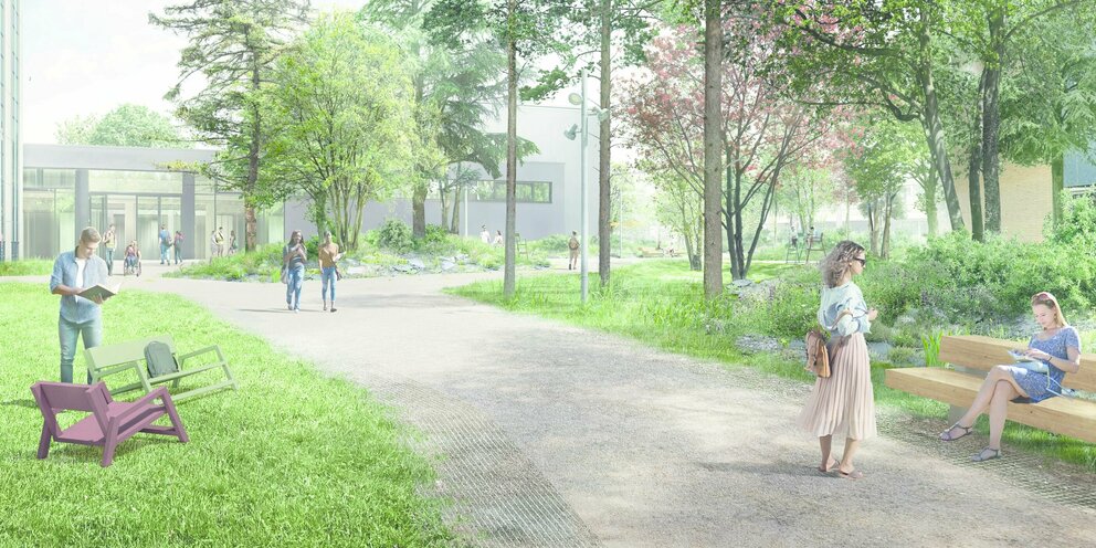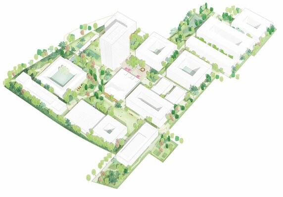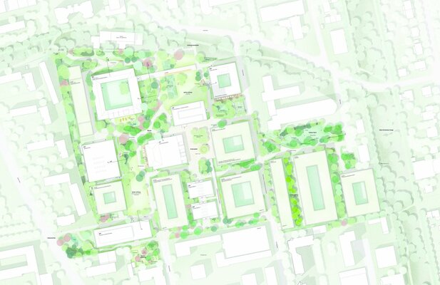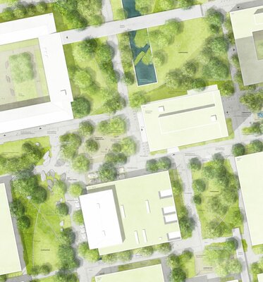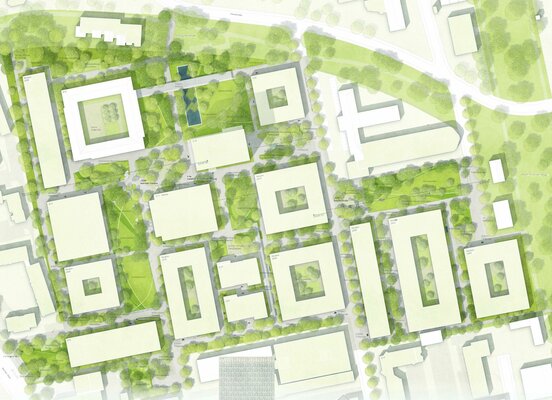 Der Ideenteil des Verfahrens bezieht sich auf den gesamten Campus und soll eine konzeptionelle Idee abbilden, die Planungsgrundlage für weitere Bauabschnitte werden kann.