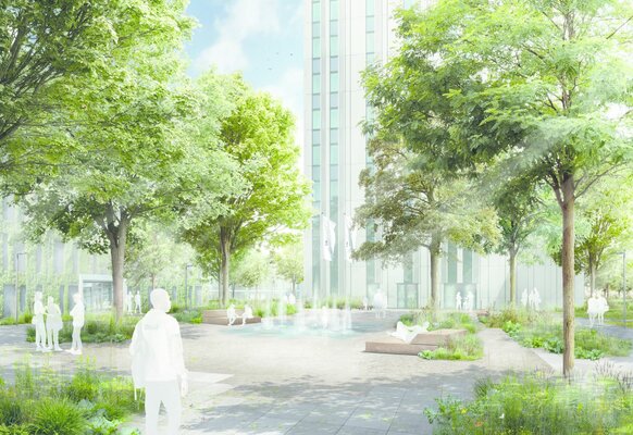 Zu beachten ist die prominente Lage des Realisierungsteils, die den zentralen Eingang und Auftakt des Campus markiert sowie die unbefriedigende Trennung der Campusteile durch die Schöfferstraße im Ideenteil. Da sich der Campus inmitten eines städtischen Quartiers befindet, ist außerdem die Betrachtung der Übergänge und Verzahnung zu angrenzenden öffentlichen und privaten Freiräumen wichtiger Bestandteil der Wettbewerbsaufgabe. Im Realisierungsteil sind mit dem Wasserbecken und dem Laubengang bauzeitliche denkmalgeschützte Elemente vorhanden, die in die Planung zu integrieren sind. Eingriffe in das denkmalgeschützte angrenzende Atriumgebäude und deren Innenhof sind nicht Teil der Aufgabe. Für die „Kunst am Bau“ im Realisierungsteil ist der künstlerische Ansatz freigestellt. Zu achten ist jedoch auf eine schlüssige gestalterische Integration in die Freianlagenplanung und wirtschaftliche und technische Umsetzbarkeit.