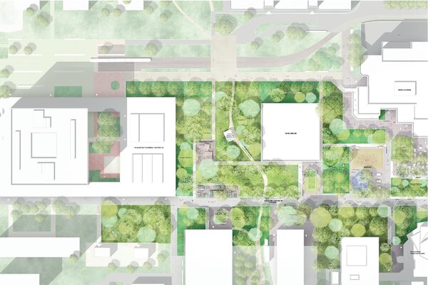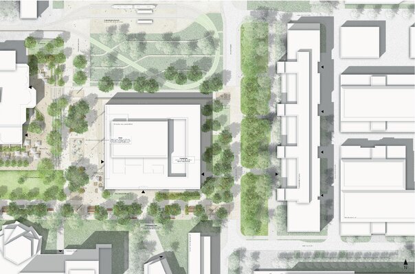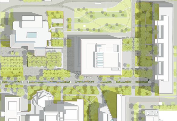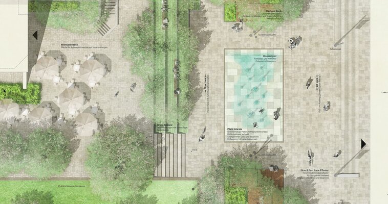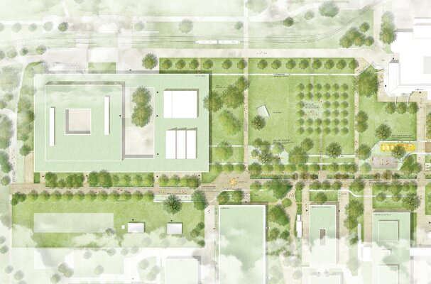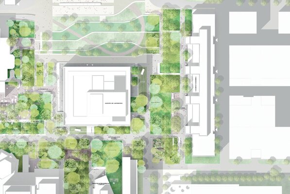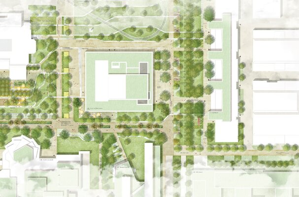 ...wird der Entwurf durch die Jury zusammenfassend als konzeptionell besonders klarer und in sich schlüssiger Wettbewerbsbeitrag hervorgehoben, der mit angemessenen formalen Mitteln ein hohes Maß an Ordnung, Orientierung und Freiraumqualität in der Campusmitte schafft.