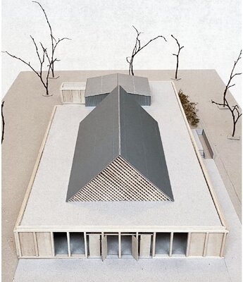 Der Entwurf besticht durch seine klare integrierende Form, die die Veranstaltungssäle in Form traditionell giebelständiger Gebäude als Kern des Gesamtensembles nahezu sakral in Szene setzt.