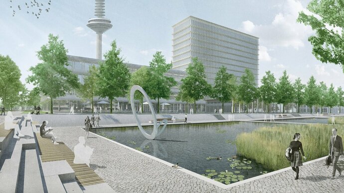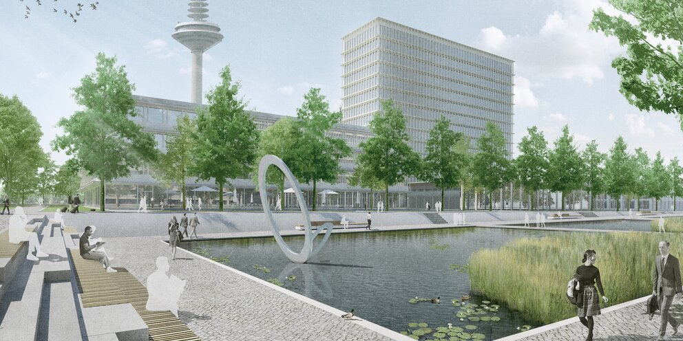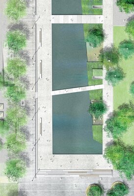 Die Arbeit besticht durch einen klaren, ruhigen, wassergeprägten Campuspark, der sich auf überzeugende Weise in das neue städtebauliche Ensemble einfügt, der Bundesbank einen angemessenen repräsentativen Auftritt verschafft und gleichermaßen hohe ökologische und Aufenthaltsqualitäten bietet.