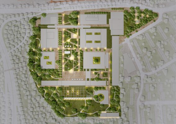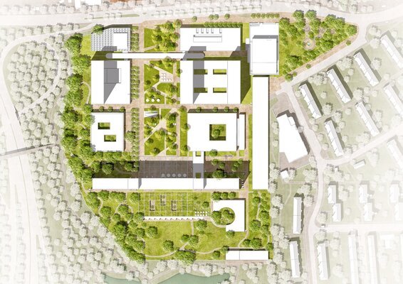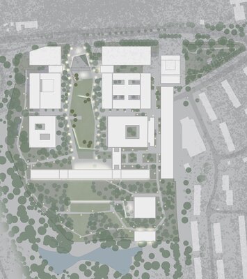 Ein Campus als individuelles Ensemble in parkartigem Gebiet