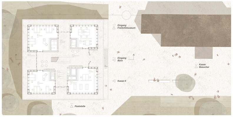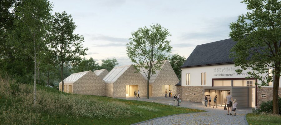 Zukunftsorientiert arbeitet der Hessenpark in seinem Kompetenzzentrum-Fachwerk daran, das Bauen mit ökologischen und natürlichen Baustoffen zu erforschen und weiterzuentwickeln und die Weiternutzung ländlicher Fachwerkgebäude zu propagieren. Im Kontext dieser Ausrichtung plant die Freilichtmuseum Hessenpark GmbH die Errichtung eines neuen Verwaltungsgebäudes, in dem moderne Arbeitsplätze für die derzeit an unterschiedlichen Standorten untergebrachten Mitarbeiter entstehen sollen. Passend zu den traditionellen Bauweisen der historischen Museumsgebäude soll der Neubau, in einer besonders nachhaltigen Strohballenbauweise hergestellt werden und die Klimaziele des Landes Hessen berücksichtigen. Zugleich soll mit dem neuen Gebäude der Zugangsbereich mit dem Eingangsplatz einer angemessenen Neuordnung zugeführt werden.