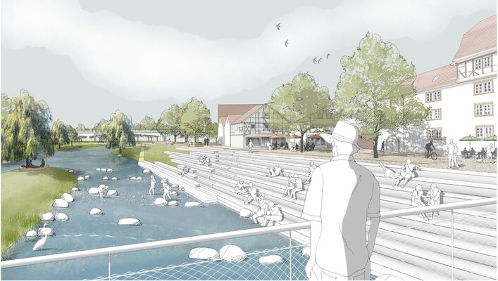 Umgestaltung der städtischen Freibereiche zwischen den Brücken in der Stadtmitte von Rotenburg an der Fulda