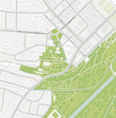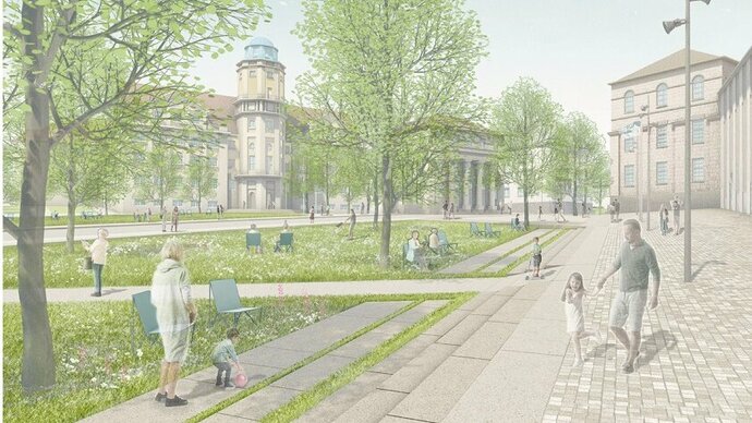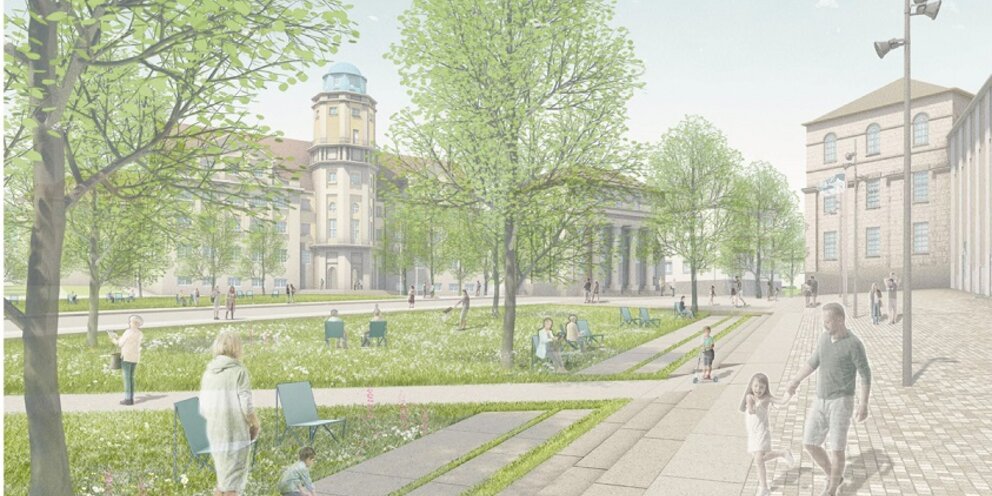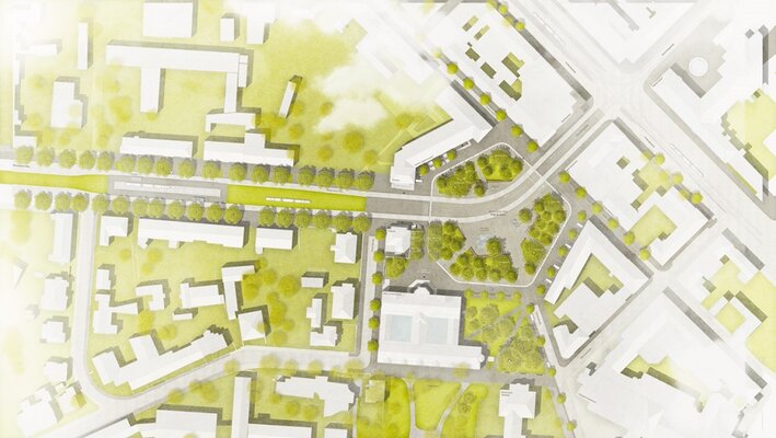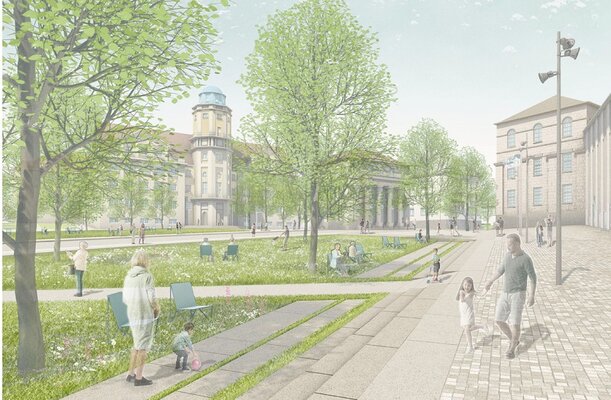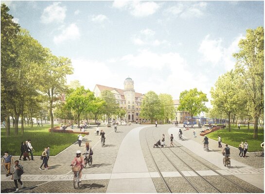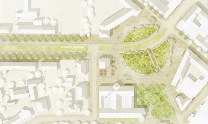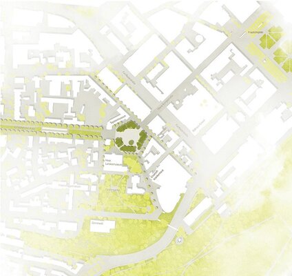 Gegenstand des Wettbewerbs ist eine Neugestaltung des Platzes zu einem grünen städtischen Platz, der höchste gestalterische Ansprüche und Aufenthaltsqualitäten mit den vielfältigen verkehrlichen Anforderungen in Einklang zu bringen vermag. Hierzu ist die Verknüpfung des Platzes mit den angrenzenden Straßenräumen und öffentlichen Freianlagen ebenso zu betrachten wie seine Einbindung in das übergeordnete städtische Verkehrswegenetz.