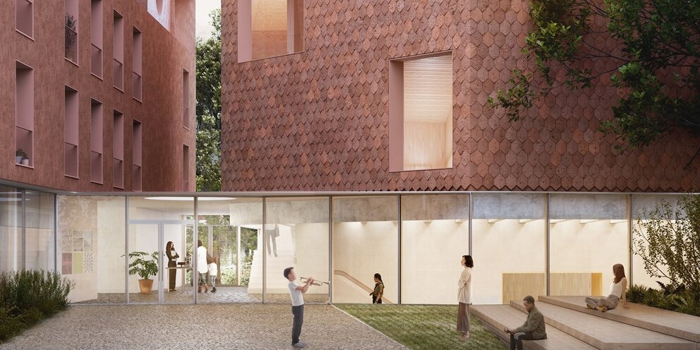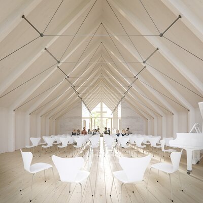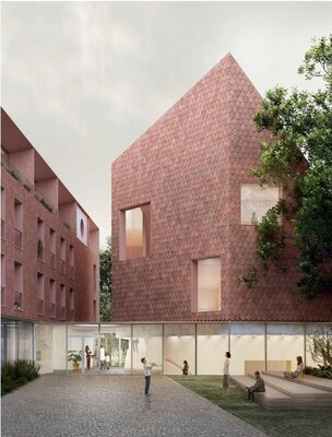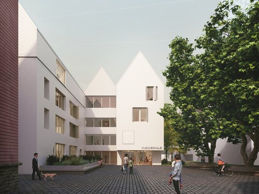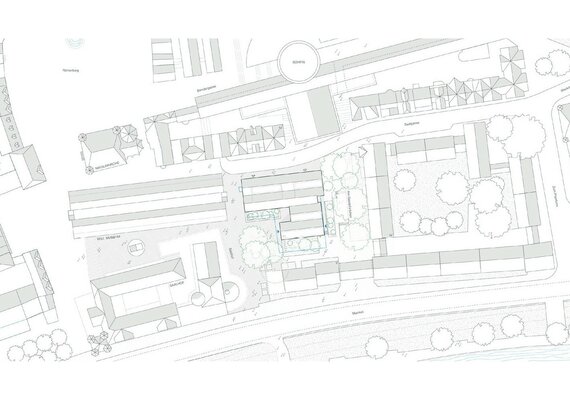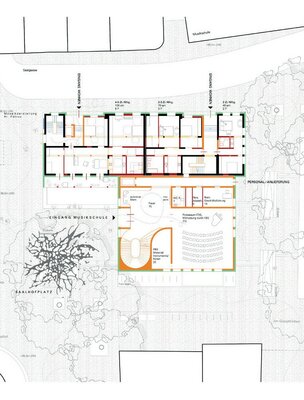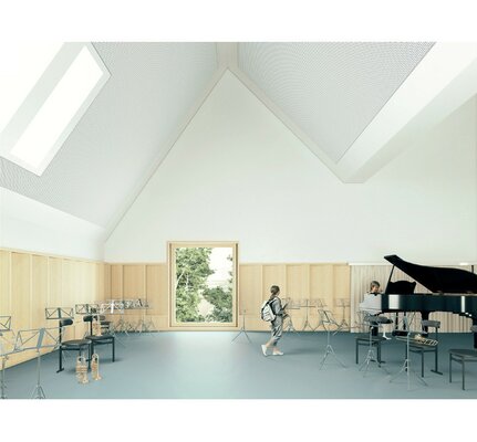 Der Entwurf überzeugt durch die kluge städtebauliche Platzierung eines klar ablesbaren Solitärs für die Nutzungen der Jugendkirchenmusik. Gleichzeitig gelingt ein geschickter Umgang mit dem bestehenden Wohngebäude, in dem durch vergleichsweise geringe bauliche Eingriffe eine hohe Wohnqualität geschaffen wird. Insgesamt wird die Arbeit als besonders gelungener Beitrag zum Wettbewerb gewürdigt.