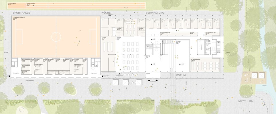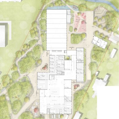 Insgesamt überzeugt diese Arbeit durch die gelungene, unaufgeregte und stimmige Bestandseinbindung, Ensemblebildung und angemessene Baukörper- und Funktionsverteilung. Die räumlichen Qualitäten lassen einen sehr guten Schulalltag für alle Beteiligten erwarten. Die Flexibilität der Grundrisse gibt auch zukünftigen Entwicklungen Raum.