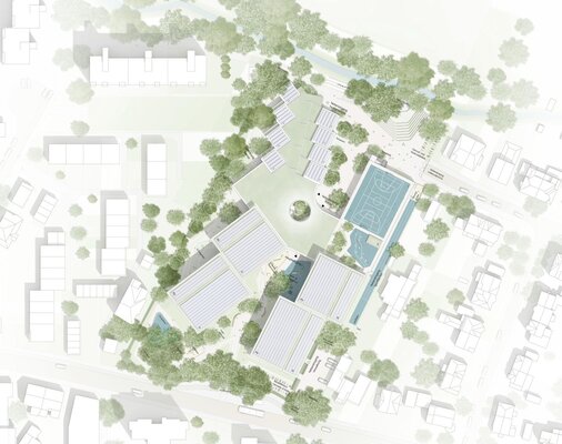 - 3. Platz (23.000 Euro): Auer Weber Assoziierte GmbH, Dipl.-Ing. Architekt Moritz Auer, Dipl.-Ing. Architekt Philipp Auer, Dipl.-Ing. (FH) Architekt Stephan Suxdorf, Stuttgart mit HDK Dutt & Kist GmbH, Dipl.-Ing. M.-Eng. Freier Landschaftsarchitekt und Stadtplaner Luca Kist, Saarbrücken