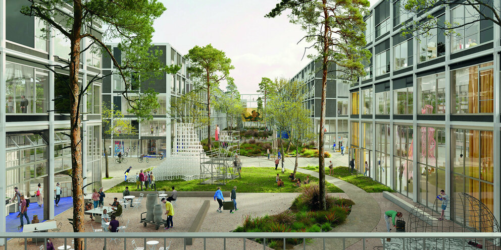 - 2. Preis (100.000 Euro): ROBERTNEUN™ ARCHITEKTEN GMBH, Tom Friedrich, Berlin + Penzel Valier AG, Leonore Daum, Zürich + Atelier Loidl Landschaftsarchitekten Berlin GmbH, Leonard Grosch, Berlin