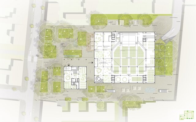 - Ein 3. Preis (48.200 Euro): Bez + Kock Architekten Generalplaner GmbH, Dipl.-Ing. Freier Architekt BDA Martin Bez mit Koeber Landschaftsarchitektur GmbH, Dipl.-Ing. freier Garten- und Landschaftsarchitekt bdla Joachim Köber, beide Stuttgart