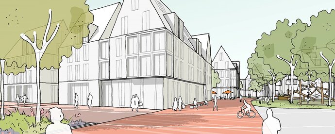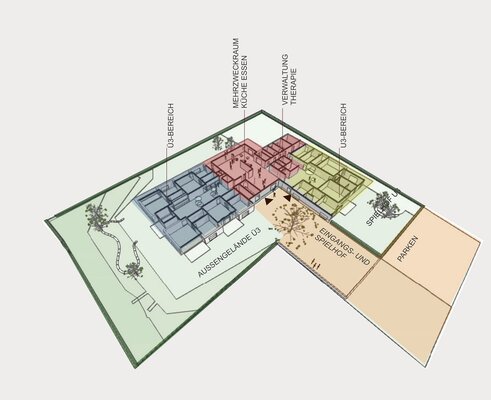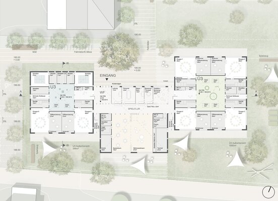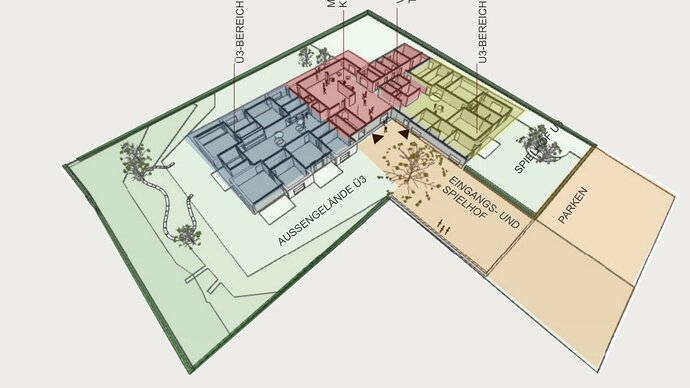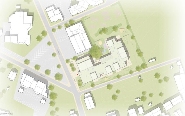 Ziel ist es, auf der Fläche einen umsetzbaren Gebäudeentwurf mit besonderen städtebaulichen, gestalterischen und funktionalen Qualitäten zu finden, der gleichzeitig den wirtschaftlichen Rahmen der Aufgabe einhält und die pädagogischen Anforderungen umsetzt.