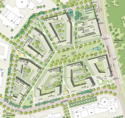 | Wettbewerbstitel | Städtebaulicher und freiraumplanerischer Ideenwettbewerb Mertonviertel / Nördlich Lurgiallee, Frankfurt am Main |