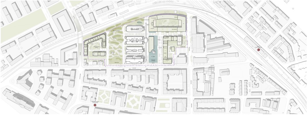 - 2. Preis (12.500 Euro): ATP Frankfurt Planungs GmbH, M.A. | Architect Jorge Pinares Huamani, Frankfurt am Main / Rainer Schmidt Landschaftsarchitekten GmbH, Prof. Rainer Schmidt, München