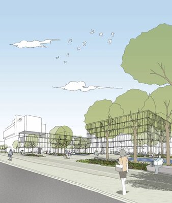 - 3. Preis (8.500 Euro): happarchitecture. JJH Architektengesellschaft mbH, Dipl.-Ing. Architekt, Stadtplaner Jens Jakob Happ, Frankfurt am Main / DLA - Die Landschaftsarchitekten Bittkau-Bartfelder PartGmbB, Dipl.-Ing. Landschaftsarchitektin Petra Bittkau, Wiesbaden