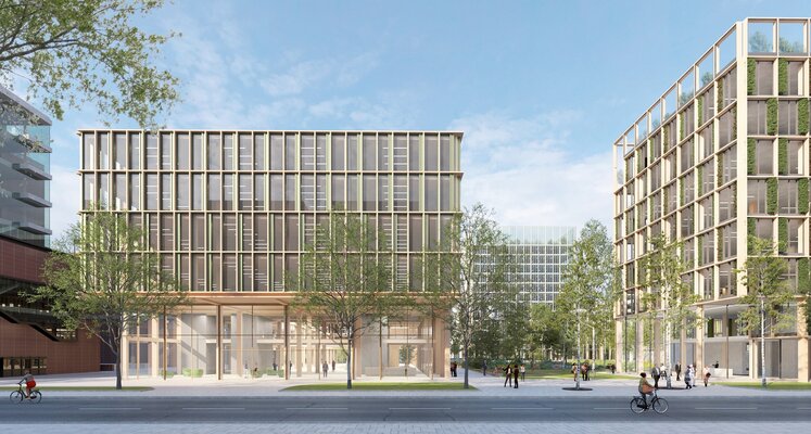 Insgesamt stellt der Entwurf einen überzeugenden Beitrag zur gestellten Aufgabe dar, weil er überzeugend auf den Ort und seine Rahmenbedingungen reagiert, die Anforderungen an eine zukunftsfähige Arbeitswelt und -umgebung gut räumlich übersetzt und zu einem integralen Baustein der City-West wird.