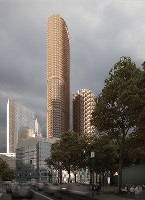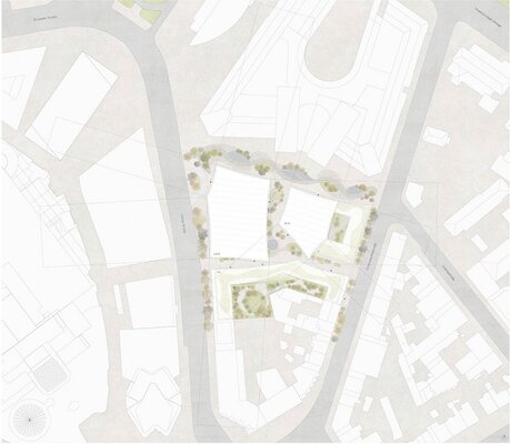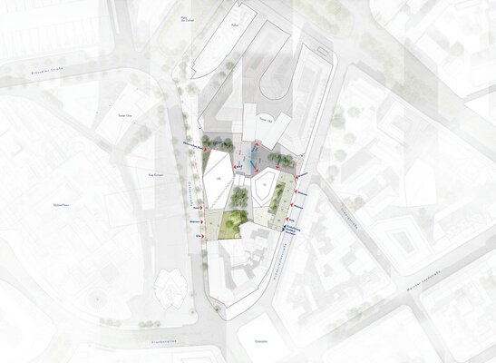 Insgesamt stellt der Entwurf sowohl auf stadträumlicher Ebene (in den öffentlichen Räumen und den Sockelbereichen) wie auch auf skulpturaler Ebene (in Bezug auf seine Ensemble- und Fernwirkung) einen besonders eigenständigen und qualitätsvollen Beitrag zum Wettbewerb dar.