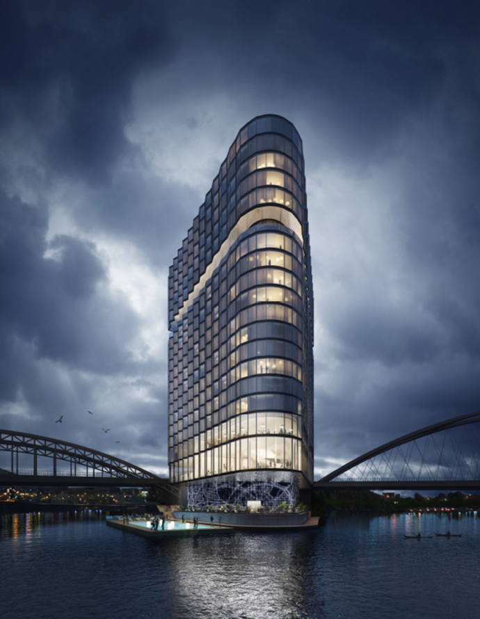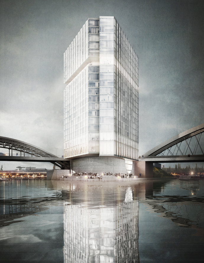 Gegenstand des Wettbewerbs ist der architektonische Entwurf für einen Neubau eines Hotels einschließlich Boardinghouse auf dem Molenkopf des Frankfurter Osthafens.