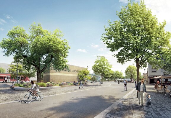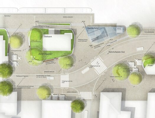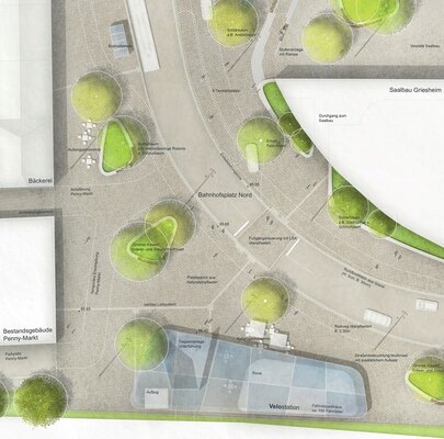 Die Neugestaltung der Flächen rund um den S-Bahnhof ist aufgrund der zentralen Lage und des Mangels an Treffpunkten in Griesheim-Mitte eines der Schlüsselprojekte in der nachhaltigen Entwicklung vor Ort. Die Flächen haben die wichtigen Funktionen eines Treffpunkts, die verbindende Unterführung dient als Entrée in das Quartier. Im Rahmen des Wettbewerbs sind qualitätvolle Aufenthaltsflächen für die Griesheimer Einwohnerschaft zu schaffen, dabei steht insbesondere die Schaffung eines identitätsstiftenden Quatiersplatzes im Norden im Vordergrund.