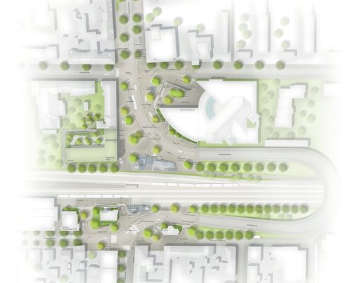- 2. Preis (28.000 Euro): Arge ambrosius blanke verkehr.infrastruktur, Dr. Philipp Ambrosius, Bochum mit Büro lohrer.hochrein landschaftsarchitekten und stadtplaner gmbh, Dipl.-Ing. (FH) Landschaftsarchitektin bdla und Stadtplanerin Ursula Hochrein, Dipl.-Ing. (FH) Landschaftsarchitekt und Stadtplaner DASL Axel Lohrer, München