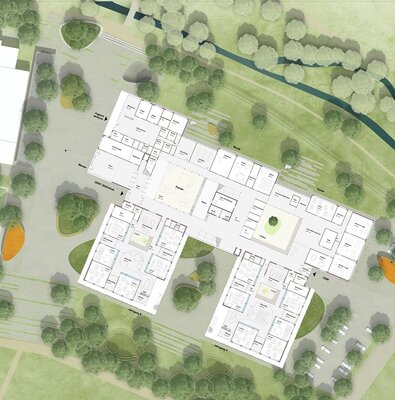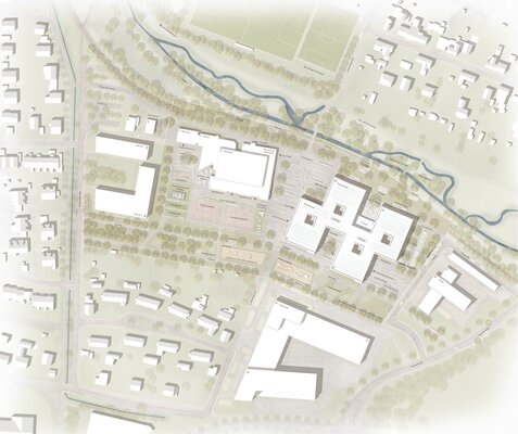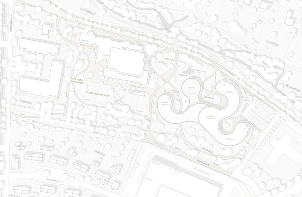 Die Offene Schule Waldau in Kassel soll einen Neubau erhalten, der den innovativen pädagogischen Ansätzen der sechszügigen Gesamtschule entspricht – Jahrgangsteams, praxisorientierter Fachunterricht, Teamschule, gelebte Gemeinschaft, Ernährung als ein wichtiger Bildungsschwerpunkt, Nachhaltigkeit als zentrales Kompetenzfeld sowie Schule als Teil einer Bildungslandschaft im Stadtteil. Es entsteht ein neuer multifunktionaler Bildungs- und Freizeitstandort, in den neben der sechszügigen Gesamtschule auch die Stadtteilbibliothek und das Jugendzentrum integriert sind. Die bestehende Sporthalle, die Mensa und das sogenannte „Ottoneum“ (Musikpavillon) sollen saniert und in das Gesamtkonzept eingebunden werden. Freiflächen werden neu geordnet und mit dem angrenzenden Wahlebach-Grünzug vernetzt.