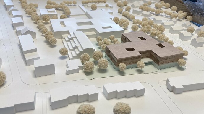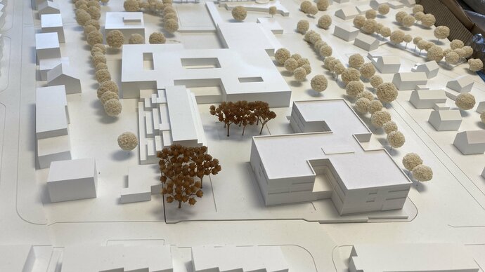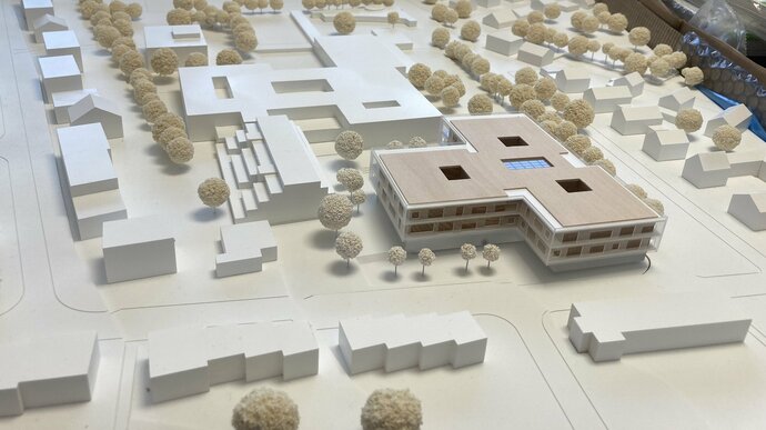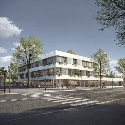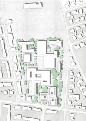 Der geplante Ersatzneubau für die Gebäudeteile A + D ist durch seine Lage im Haupteingangsbereich der Schule ein wichtiger Baustein des Campus. Er wird zukünftig das Gesicht des Schulareals nach Außen bilden und soll als verbindendes Element zwischen dem Schulcampus und der angrenzenden Wohnbebauung im Stadtteil dienen. Mit dem Neubau und dem dafür ausgearbeiteten Raumprogramm sollen die adäquaten Anforderungen an einen Schulbau der heutigen Zeit erfüllt werden. Es soll ein lebendiger und attraktiver Lernort entstehen, der sich städtebaulich harmonisch in die vorhandene Bebauung auf dem Campus einbindet und sich architektonisch mit den Sichtbetonfassaden der Bestandsgebäude auseinandersetzt, bzw. diese ergänzt. Die Ausloberin begrüßt zudem ausdrücklich Konzepte zur Wiederverwendung von Materialien, beispielsweise aus dem Rückbau der Bestandsgebäude.