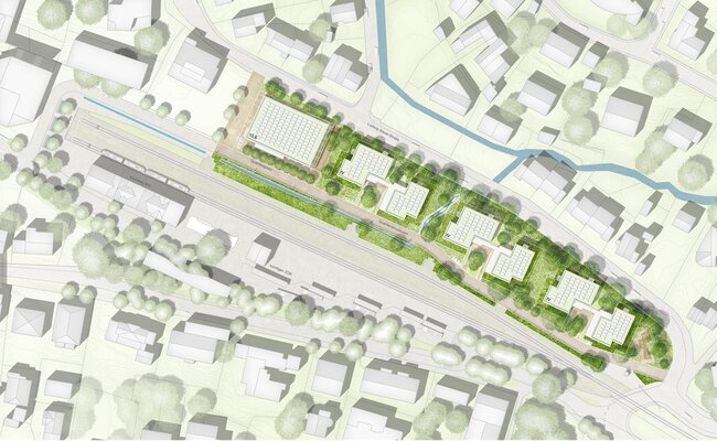 - 1. Preis (47.000 Euro): arabzadeh.schneider.wirth architekten freie architekten partnerschaft mbB, Dipl.-Ing. Freier Architekt Frederik Wirth mit faiss landschaftsarchitektur, Dipl.-Ing. (FH) M. Eng. Freie Garten- und Landschaftsarchitektin Christina Faiss, beide Nürtingen