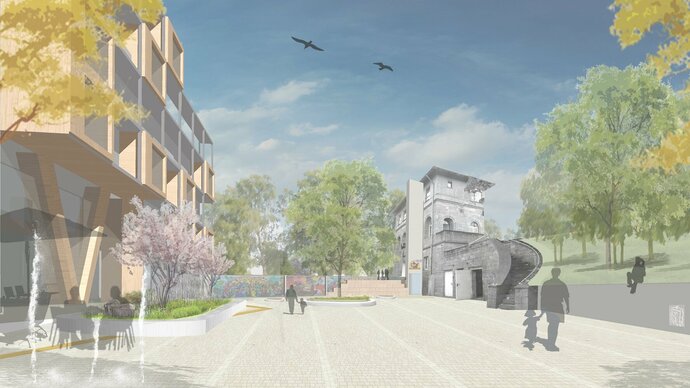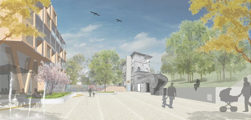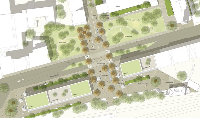 - 3. Preis (6.500 Euro): ARGE Hille Tesch Architekten + Stadtplaner / AO Landschaftsarchitekten, Stadtplaner + Ingenieure, Dipl.-Ing. Marcus Hille Architekt und Stadtplaner BDA dwb, M.A. Fabrice Tesch Architekt, Dipl.-Ing. Landschaftsarchitekt Stefan Bitter, beide Mainz