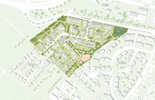 | Fachpreisrichter | Torsten Becker, Stadtplaner, Frankfurt am Main (Vorsitz) Teresa Burmester, Landschaftsarchitektin, Frankfurt am Main Prof. Volker Kleinekort, Stadtplaner, Düsseldorf Hiltrud Maria Lintel, Landschaftsarchitektin, Düsseldorf Prof. Dr.-Ing. Annette Rudolph-Cleff, Architektin und Stadtplanerin, Darmstadt Marcus Hille, Architekt und Stadtplaner, Ingelheim (Stellvertretung) Elke Ukas, Landschaftsarchitektin, Karlsruhe (Stellvertretung) |