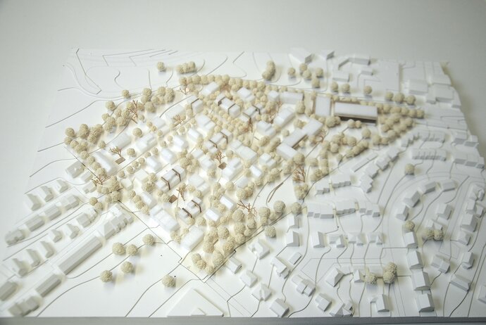 Insgesamt ist die Arbeit ein sehr guter und in den gemachten Angeboten robuster und zukunftsweisender Beitrag für die Quartiersentwicklung in Walluf und überzeugt durch die harmonische Einfügung in den Bestand und die Stadtform zur Landschaft.