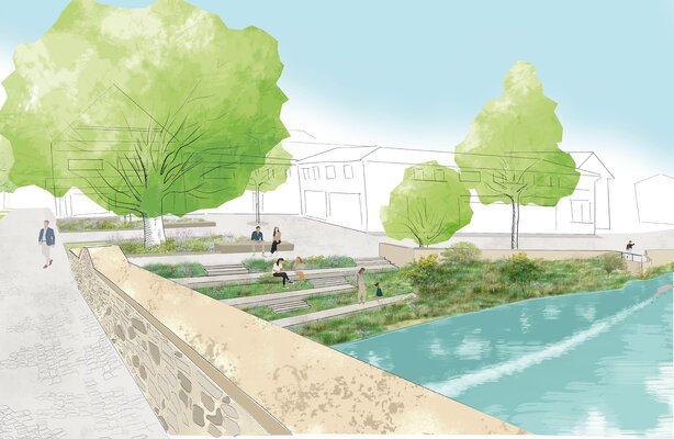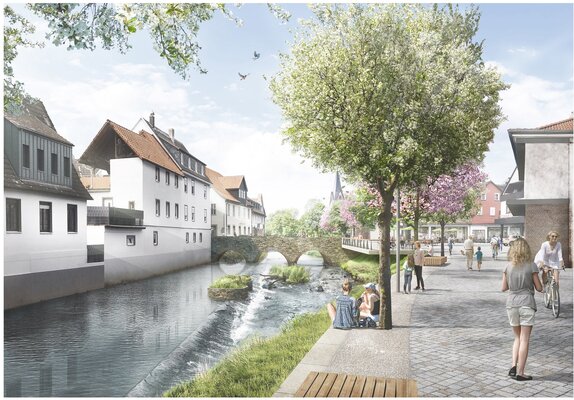 Der durchgängige und barrierefreie Uferweg auf der Nordseite wird ebenso wie die Erlebnispunkte am Wasser als positiv hervorgehoben; die Nidda wird als Erlebnisbereich umgesetzt und im Sinne eines Identitätsmerkmals begriffen.