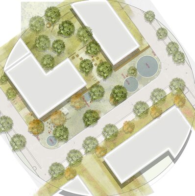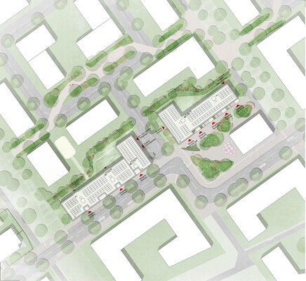 - 3. Preis (10.000 Euro): dirschl.federle_architekten gmbh, Dipl.-Ing. Architektin BDA Kristin Dirschl, Dipl.-Ing. Architekt Matthias Federle, Frankfurt am Main mit GTL Landschaftsarchitektur Triebswetter, Mauer, Bruns Partner mbB, Freischaffende Landschaftsarchitektin Katrin Mauer, Kassel