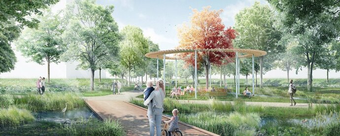- 1. Preis (18.000 Euro): pbr Planungsbüro Rohling AG Architekten Ingenieure, Dipl.-Ing. Architekt Dieter Adelberger, Frankfurt am Main mit pbr freiraum GmbH, Landschaftsarchitekt M.Sc. Jan-Eric Fröhlich, Hannover