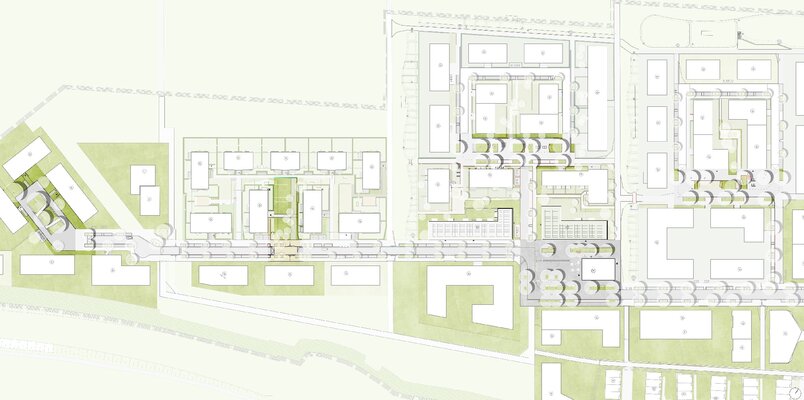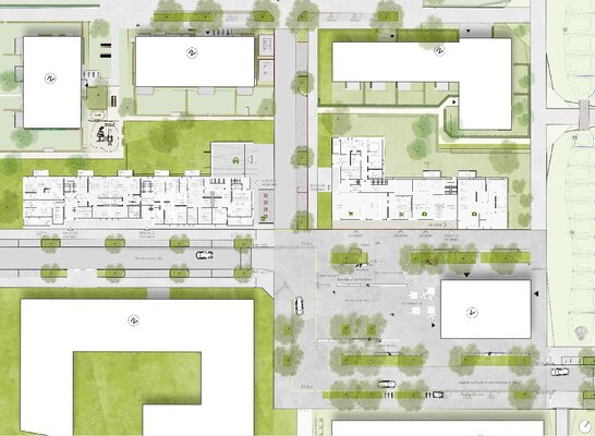 Die Ausloberin beabsichtigt die Errichtung zweier Wohngebäude im neu entstehenden Stadtquartier Hilgenfeld. Diese beiden Wohngebäude bilden mit dem anschließenden Quartiersplatz die neue Quartiersmitte mit entsprechend hoher städtebaulicher Bedeutung. Bestandteil der Wettbewerbsaufgabe sind außerdem neben dem Quartiersplatz vier weitere Freiflächen unterschiedlicher Größe und Funktion, die über das Quartier verteilt sind. Grundlage für die Gebäude- und Freianlagenplanung ist ein bestehender städtebaulicher Rahmenplan und der daraus abgeleitete Bebauungsplan.