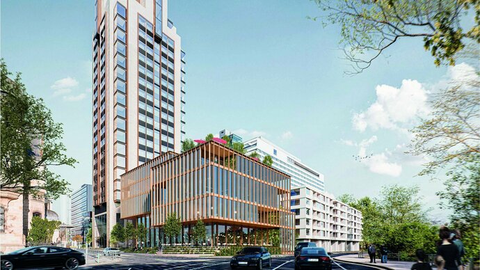 Gegenstand des Realisierungswettbewerbs ist der Ersatzneubau für den Mainseitigen Anbau des früheren Union-Investment-Turms in der Wiesenhüttenstraße 10 in Frankfurt am Main. Der Bauherr beabsichtigt einen Neubau in nachhaltiger, CO2-sparender Konstruktion, z. B. Holz-Hybridbauweise, unter Integration und Umbau der vorhandenen Untergeschosse. Der Neubau ist mit dem Hochhaus, das sich ebenfalls in Transformation befindet, funktional zu verbinden. Bei der Planung ist der besondere städtebauliche Kontext mit den umgebenden Kulturdenkmälern und der exponierten Lage am Fluss ebenso zu beachten, wie der Bezug zur künftigen Bebauung des östlichen Nachbarn (ehemaliges InterConti-Hotel).