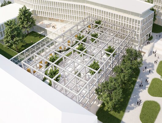 - Ein 2. Preis (49.000 Euro): HPP Architekten GmbH, Dipl.-Ing. BDA Gerhard Feldmeyer, Dipl.-Ing. AIV Volker Weuthen, Düsseldorf mit Rehwaldt Landschaftsarchitekten, Dresden und Transsolar Energietechnik GmbH, Stuttgart, Knippers Helbig GmbH und hhpberlin, beide Berlin