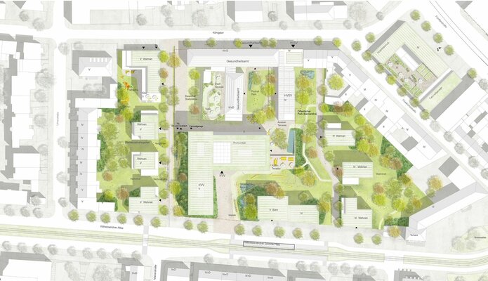 Die Kasseler Verkehrs- und Versorgungs-GmbH (KVV) ist eine Unternehmensgruppe, in der die Stadt Kassel 1987 ihre Versorgungs- und Erzeugungsunternehmen für Strom, Gas, Fernwärme, ÖPNV, Entsorgung und Telekommunikationsdienstleistungen zusammengefasst hat. Die KVV beabsichtigt eine Neuaufstellung und Sanierung der Liegenschaft zwischen Wilhelmshöher Allee und Königstor. Der Anlass der Neuaufstellung begründet sich in dem sanierungsbedürftigen Zustand der meisten Gebäude und dem nicht mehr zeitgemäßen Raumkonzept. Der Wettbewerb soll unter anderem eine Antwort auf die Frage liefern, wie effizienteres Arbeiten ermöglicht werden kann, indem auf den tatsächlichen Bedarf der Abteilungen an Teamarbeit wie auch konzentriertem Arbeiten eingegangen wird. Es besteht der Wunsch nach flexiblen Raum- und Gebäudestrukturen sowie einer kreativitätsfördernden Umgebung. Darüber hinaus gilt es – gleichermaßen für Besucherinnen und Besucher wie Nutzerinnen und Nutzer des Gebäudes – die Aufenthalts- und Arbeitsplatzbedingungen durch Schaffung neuer Qualitäten zu optimieren.