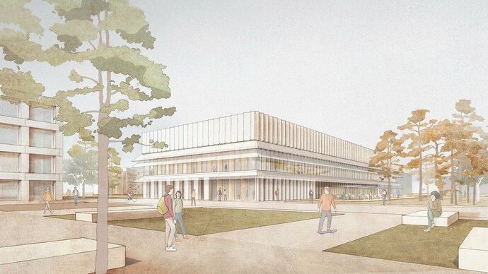 Der Universitätsstandort Philosophikum soll zu einem belebten Universitätsquartier mit eigenem Charakter, der durch urbane wie landschaftliche Qualitäten gleichermaßen geprägt ist, werden – Studentisches Arbeiten in Arbeitsräumen, eine Bibliothek mit Cafeteria am Campusplatz und langen Öffnungszeiten, Abendveranstaltungen für die Öffentlichkeit, Lehre und Forschung mit Gastwissenschaftlern aus aller Welt sollen ebenso wie eine hochwertige Speisenversorgung durch die neue Mensa dazu beitragen.